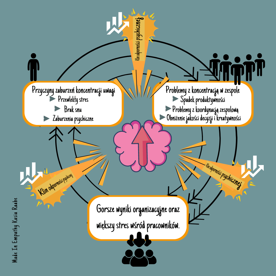 Zaburzenia koncentracji mogą znacząco wpływać na pracę zespołową oraz efektywność organizacyjną, szczególnie w środowiskach wymagających dużej współpracy i synchronizacji.